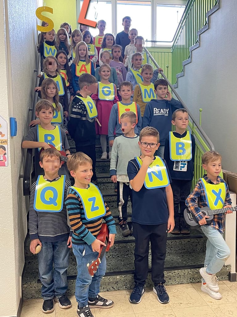 Am Tag des Festes herrschte gespannte Aufregung. Das Schulhaus war liebevoll mit Buchstaben geschmückt und zahlreiche Gäste – Eltern, Geschwister und Verwandte – füllten den Raum. Die aufgeregten, aber stolzen Zweitklässlerinnen und Zweitklässler zeigten ein fröhliches Bühnenprogramm und wurden mit herzlichem Applaus belohnt. Danach erwartete die Besucherinnen und Besucher ein buntes Buffet, das von den Eltern mit viel Kreativität zusammengestellt worden war – selbstverständlich ganz im Zeichen des Alphabets.